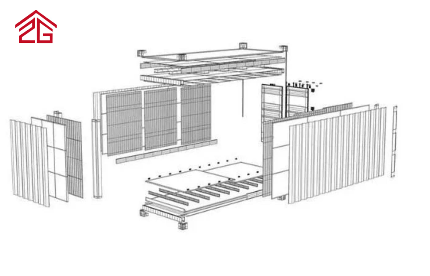 屋根と壁: 0.5 mm 鉄板 50 mm EPS 断熱層