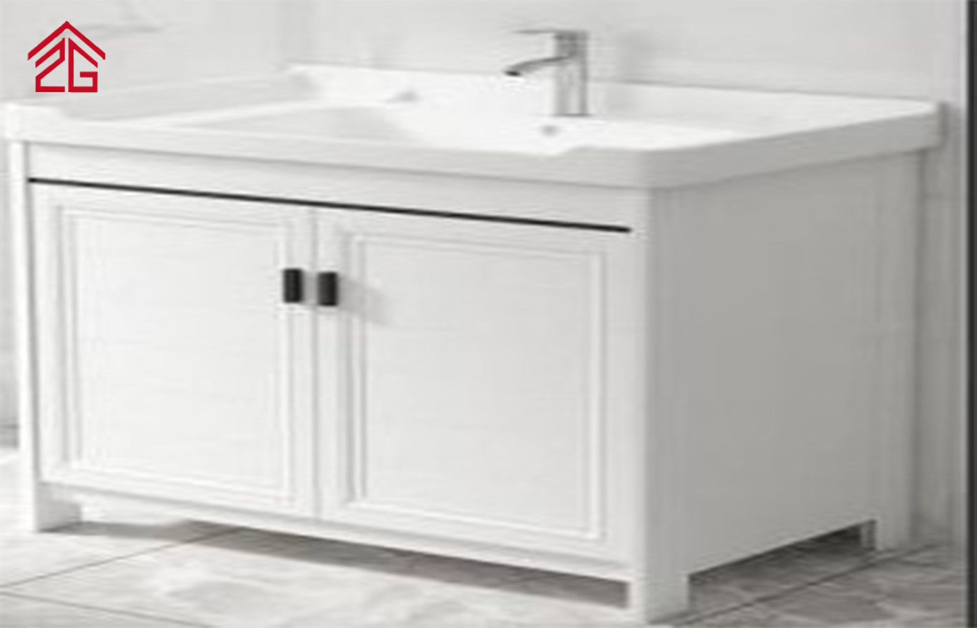 キッチン: キャビネット、温水および冷水の蛇口、ステンレス製のシンク、大理石のトップ